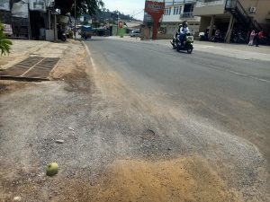 “Ya, jalan itu sekarang seperti ‘polisi tidur’, bergelombang. Apalagi kalau lagi hujan, tanah-tanah itu membuat becek,serta sangat mengancam keselamatan pengguna jalan,”ungkapnya