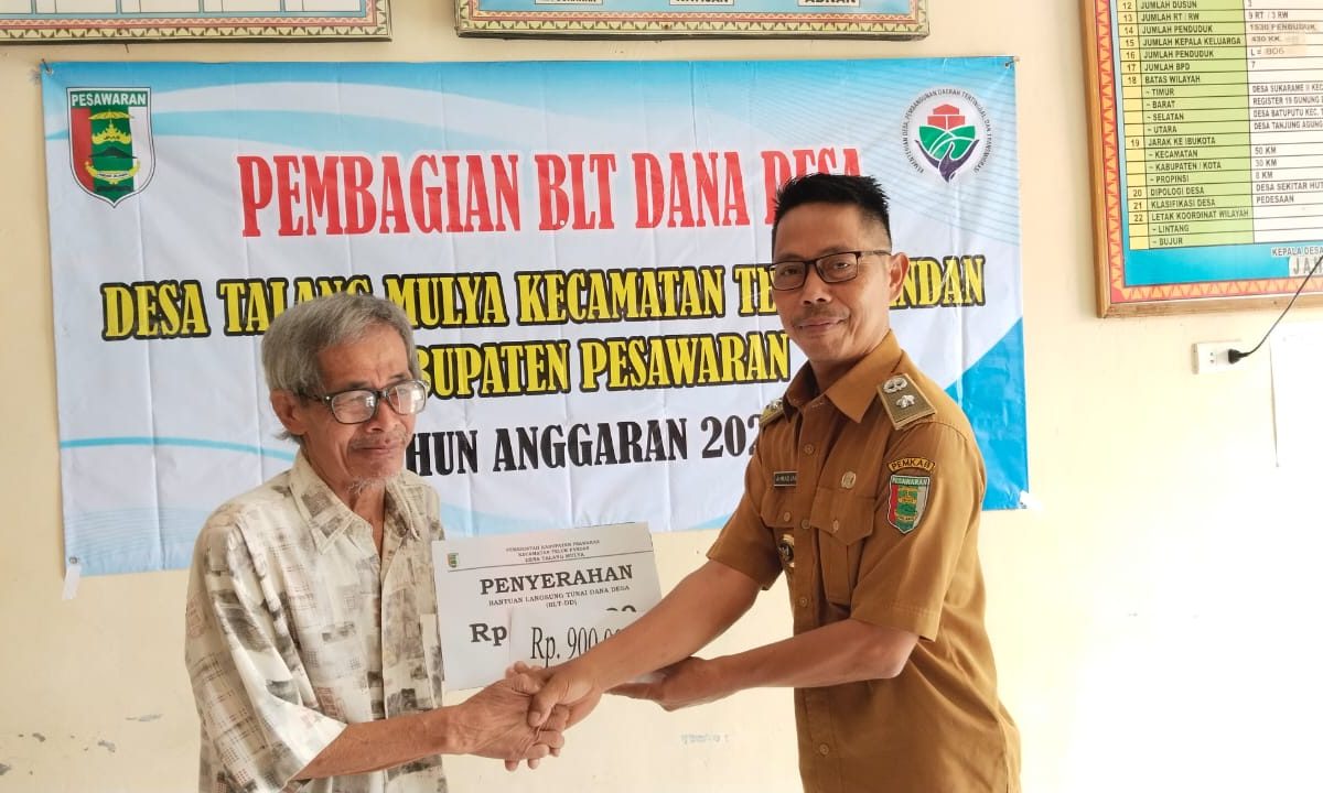 Ahmad Jahroni kepala desa Talang Mulya mengatakan pembagian BLT dd sesuai dengan ketentuan pemerintah pusat yang disalurkan untuk membantu warga yang kurang mampu.