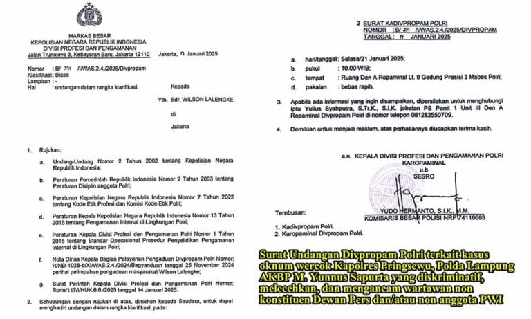 Jakarta - Propam Polri mengundang Ketua Umum Persatuan Pewarta Warga Indonesia (Ketum PPWI), Wilson Lalengke, dalam rangka klarifikasi terkait laporannya…
