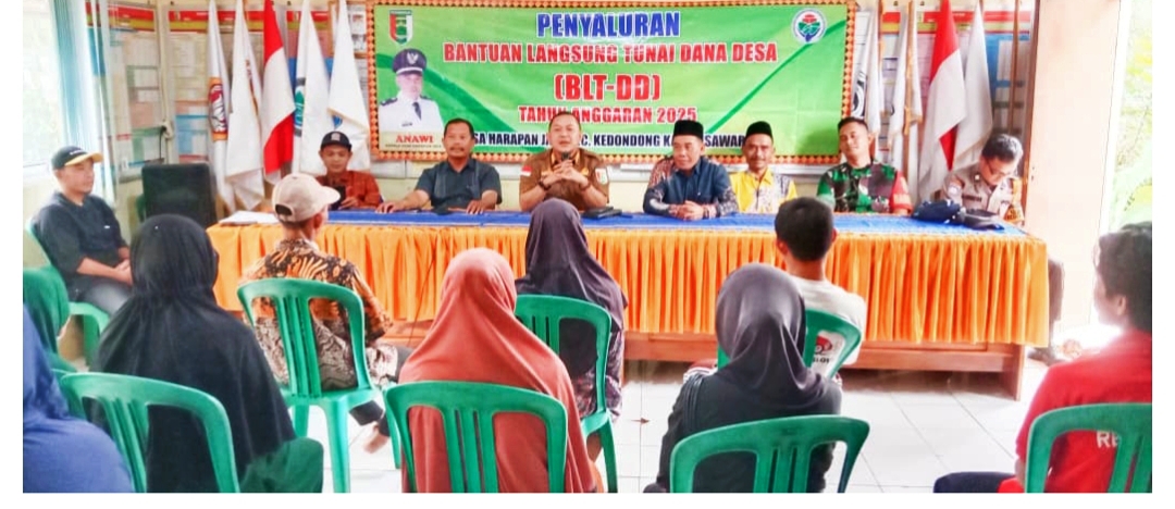 Pembagian BLT-DD dilakukan diaula kantor desa harapan jaya dengan dihadiri Anawi kepala desa harapan jaya,Irwan Rosa,SH,Bhabinsa,bhabinkamtibmas,BPD,
