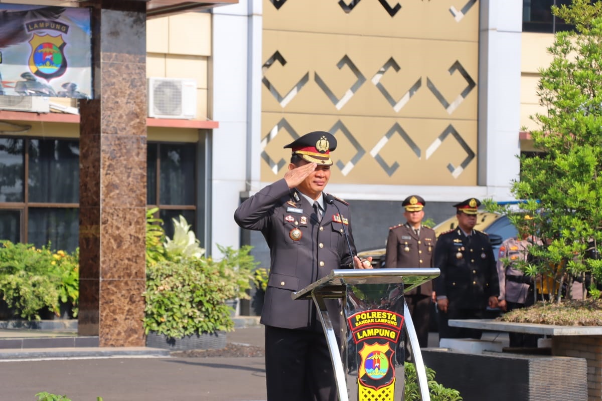 Dipimpin langsung oleh Kapolresta Bandar Lampung, Kombes Pol Abdul Waras, S.I.K., upacara digelar di lapangan Mapolres setempat dengan penuh khidmat.