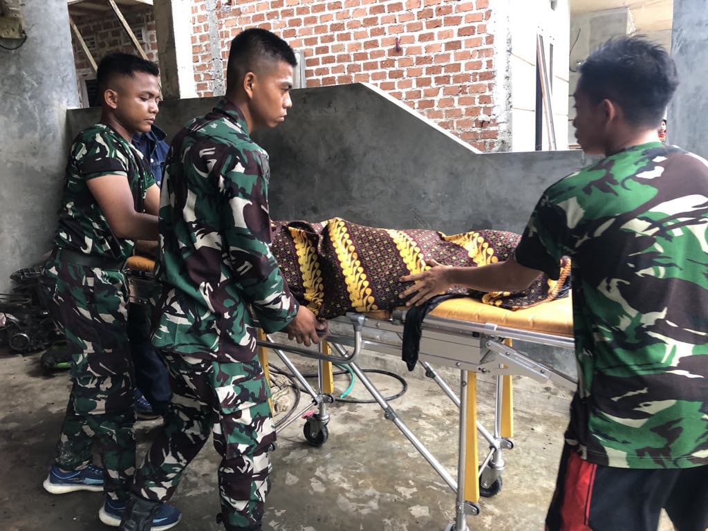 Dengan sigap Prajurit Tonkes Yonif 9 Marinir menggerakkan ambulan untuk segera mengevakuasi jenazah ke rumah sakit terdekat di dampingi oleh kepala desa Batu menyan Bapak syahruzi .
